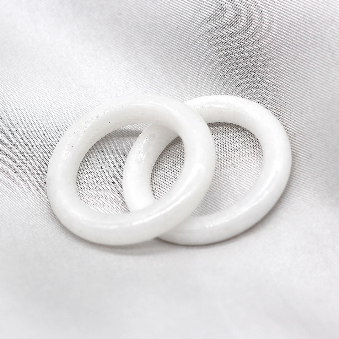 Anneau en jade blanc, pierre naturelle à l’aspect légèrement translucide.