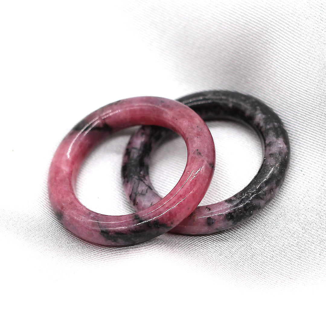Anneau en rhodonite, pierre naturelle aux nuances de rose et de noir, présentant des veines naturelles propres à chaque pièce.