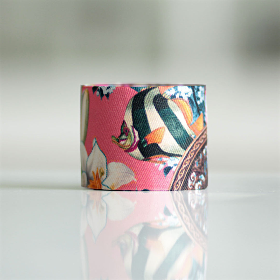 Bracelet manchette finement recouvert de soie et entièrement fait main à Lyon.