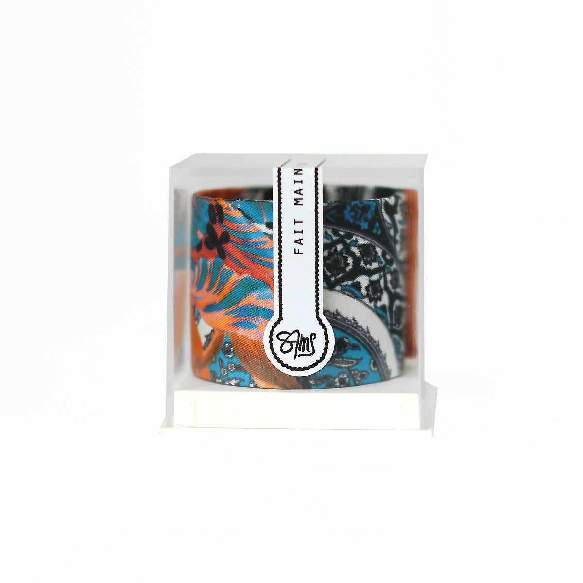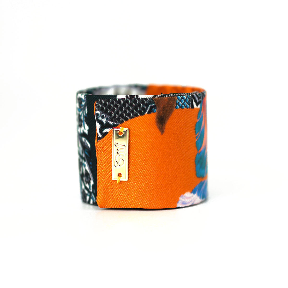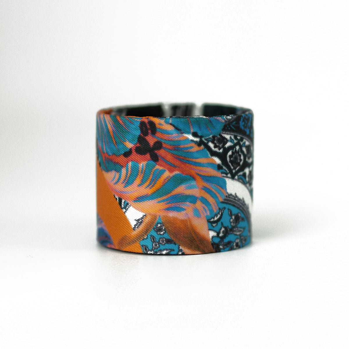 Bracelet manchette finement recouvert de soie et entièrement fait main à Lyon.