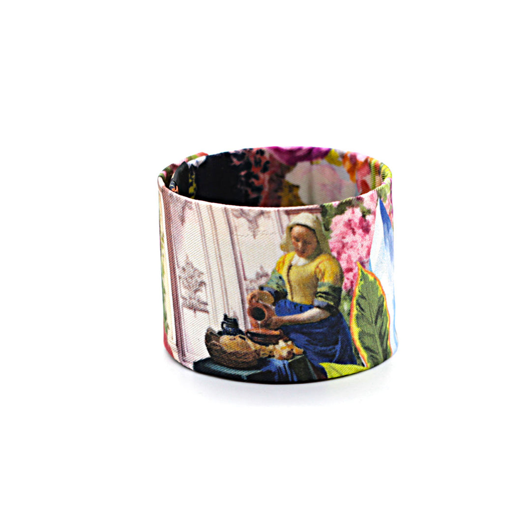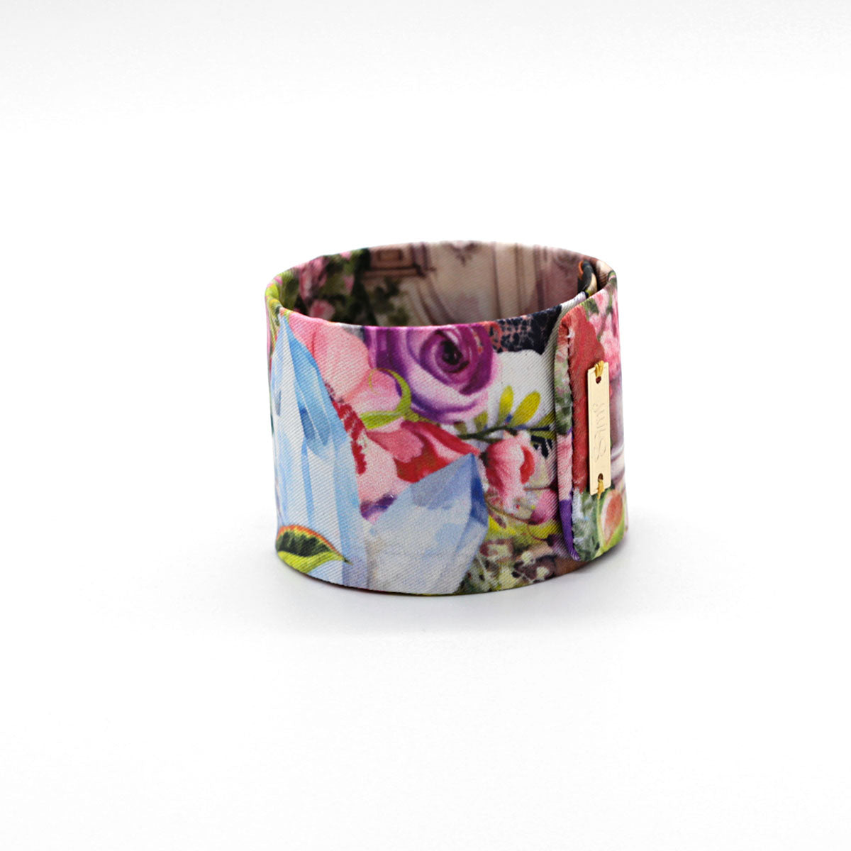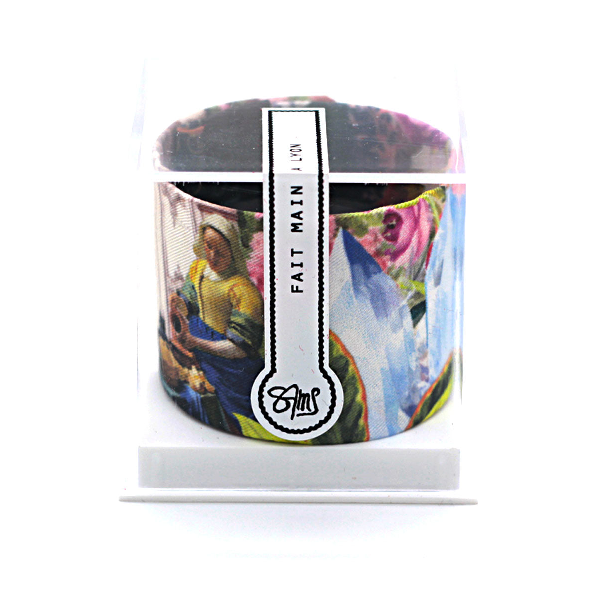 Bracelet manchette finement recouvert de soie et entièrement fait main à Lyon.