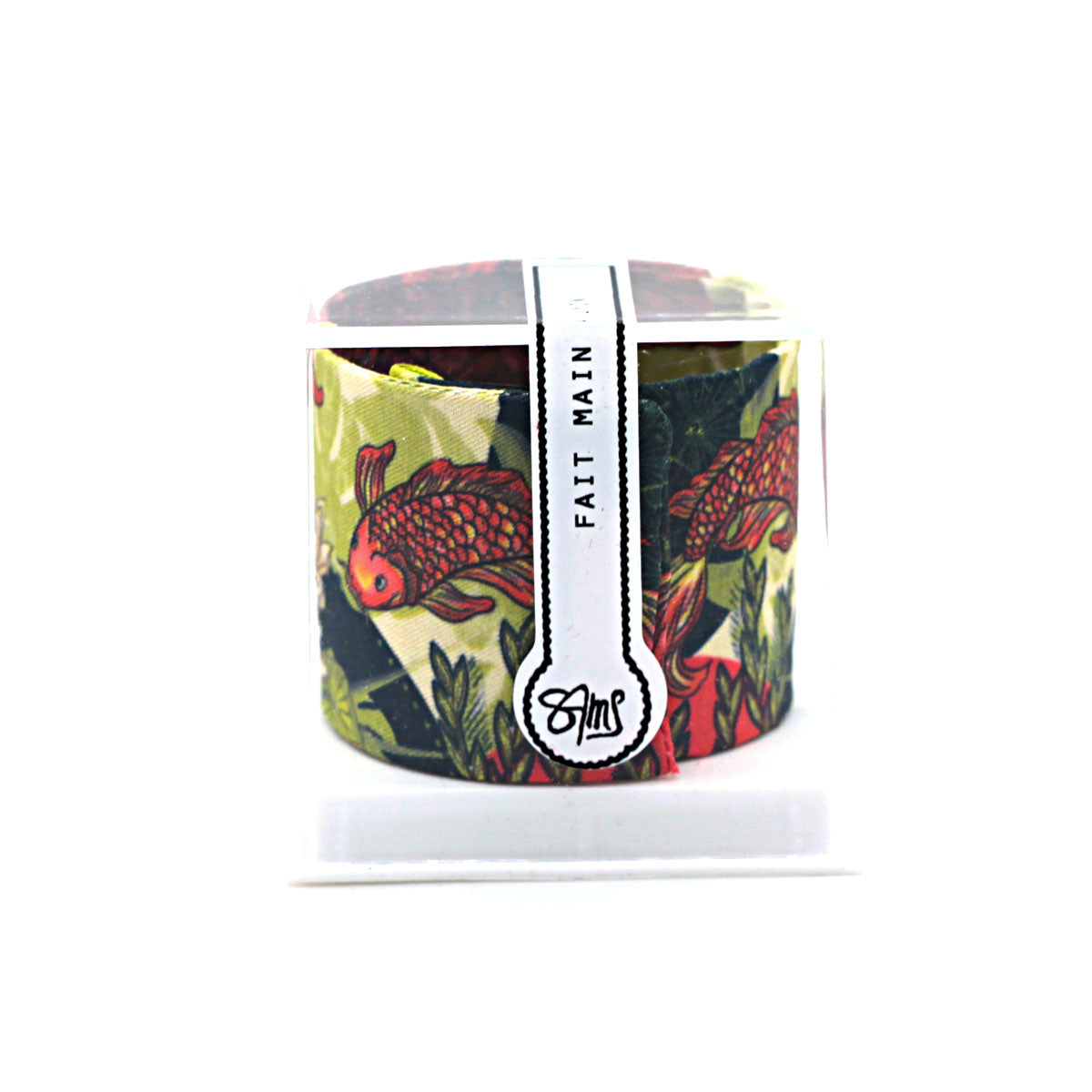Bracelet manchette finement recouvert de soie et entièrement fait main à Lyon.
