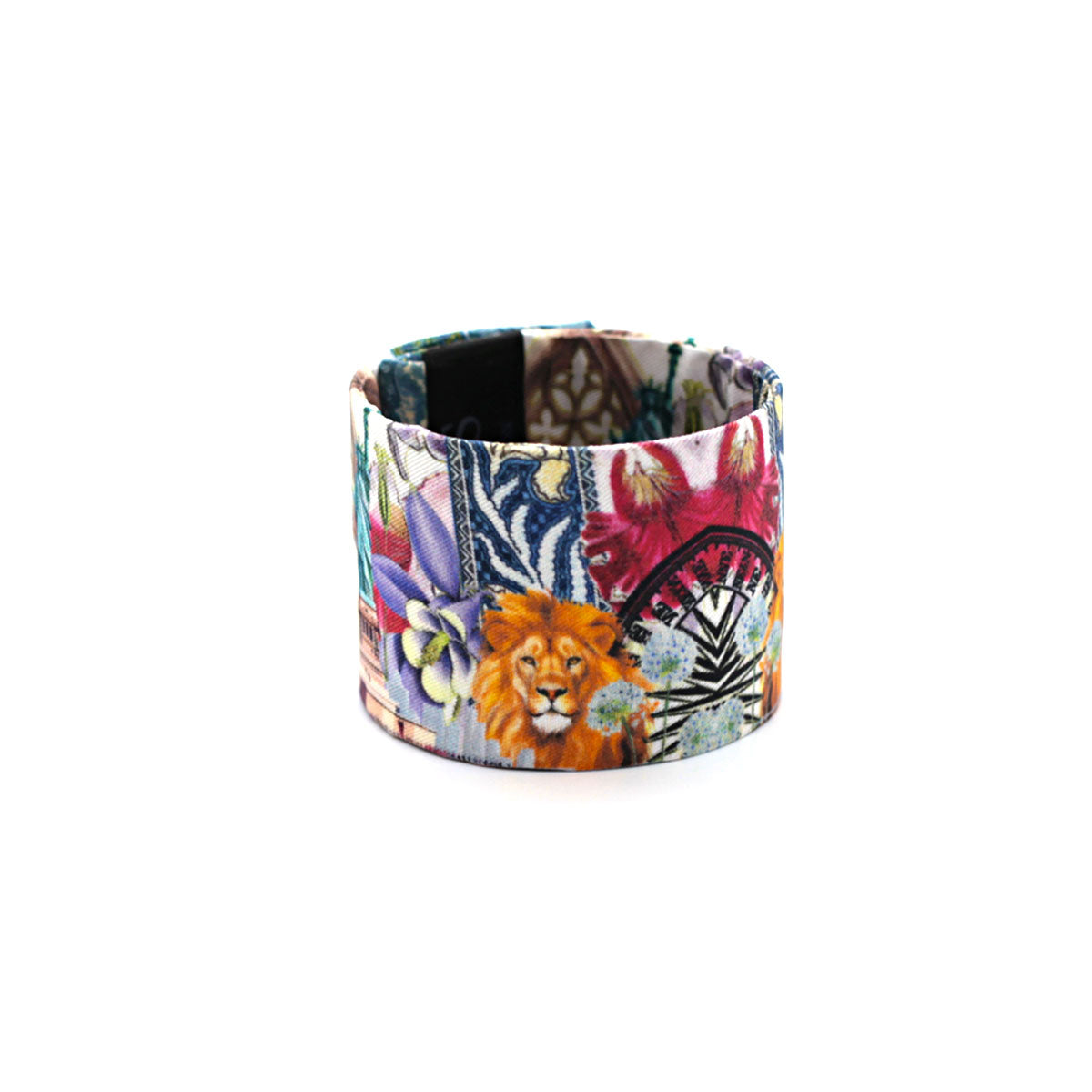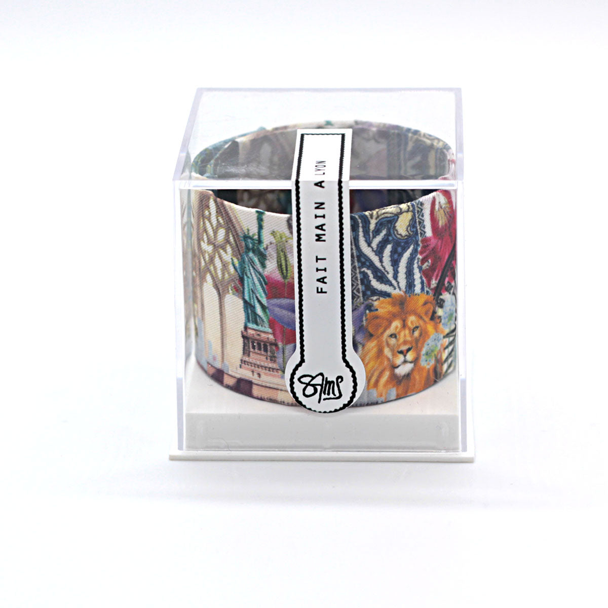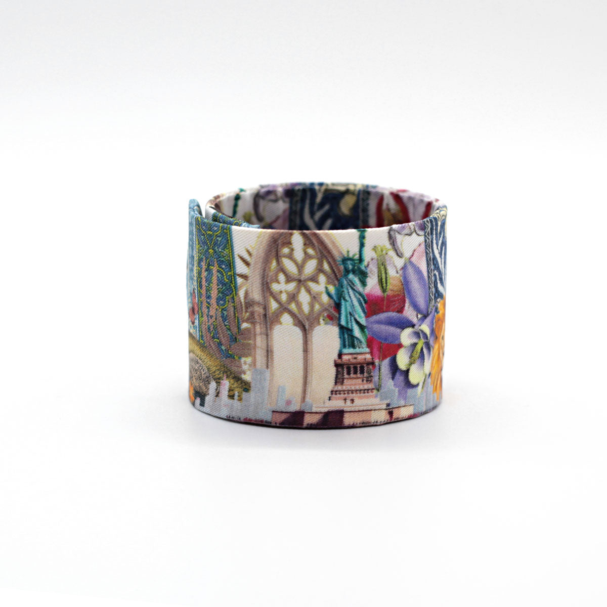 Bracelet manchette finement recouvert de soie et entièrement fait main à Lyon.