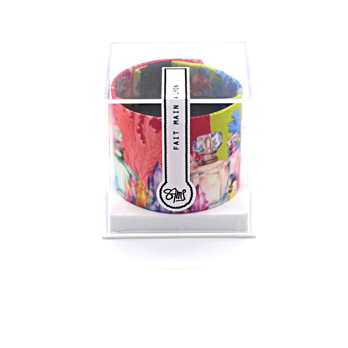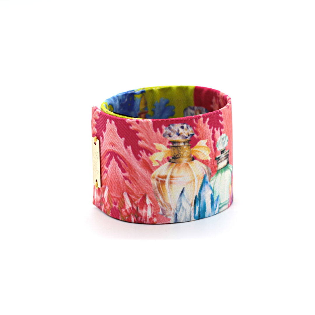 Bracelet manchette finement recouvert de soie et entièrement fait main à Lyon.