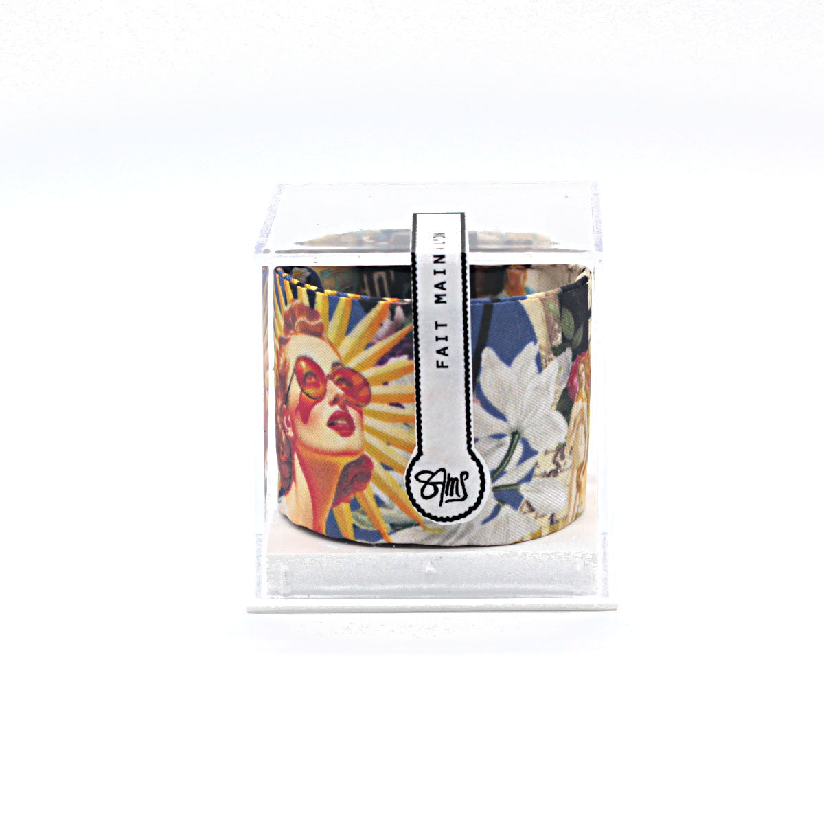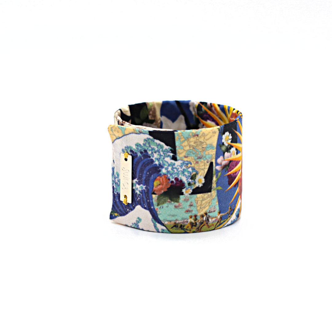 Bracelet manchette finement recouvert de soie et entièrement fait main à Lyon.