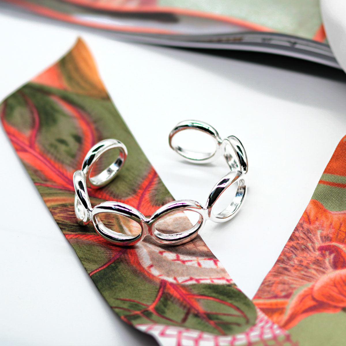 Notre bracelet emblématique marie la noblesse de l'argent à la délicatesse d’un mini twill de soie imprimée, interchangeable à l’infini.