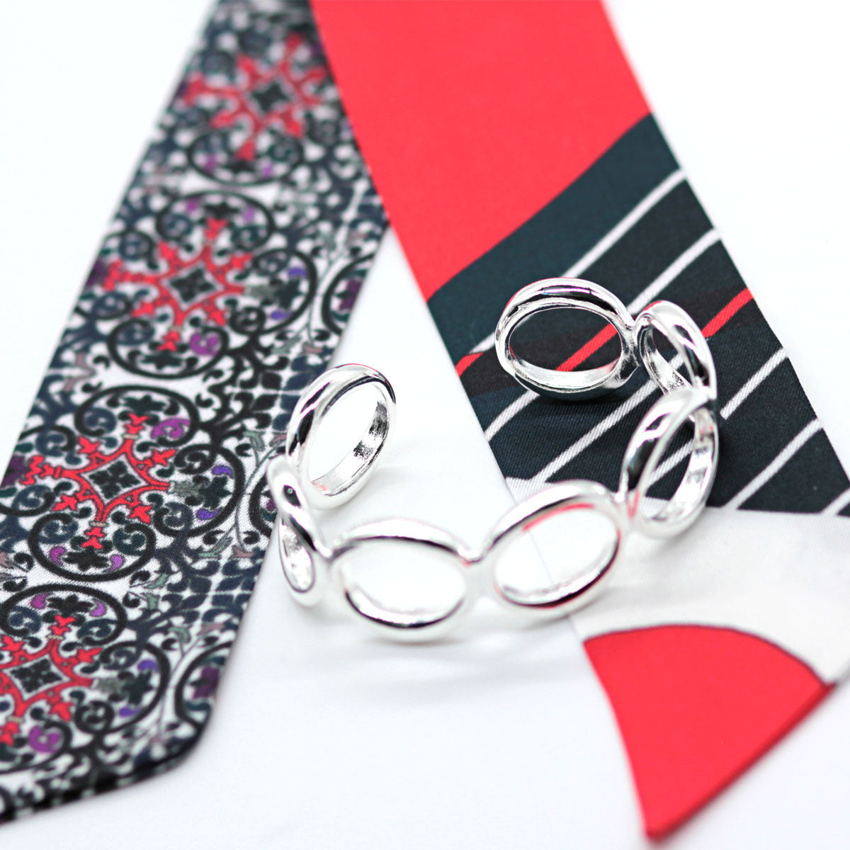 Notre bracelet emblématique marie la noblesse de l'argent à la délicatesse d’un mini twill de soie imprimée, interchangeable à l’infini.