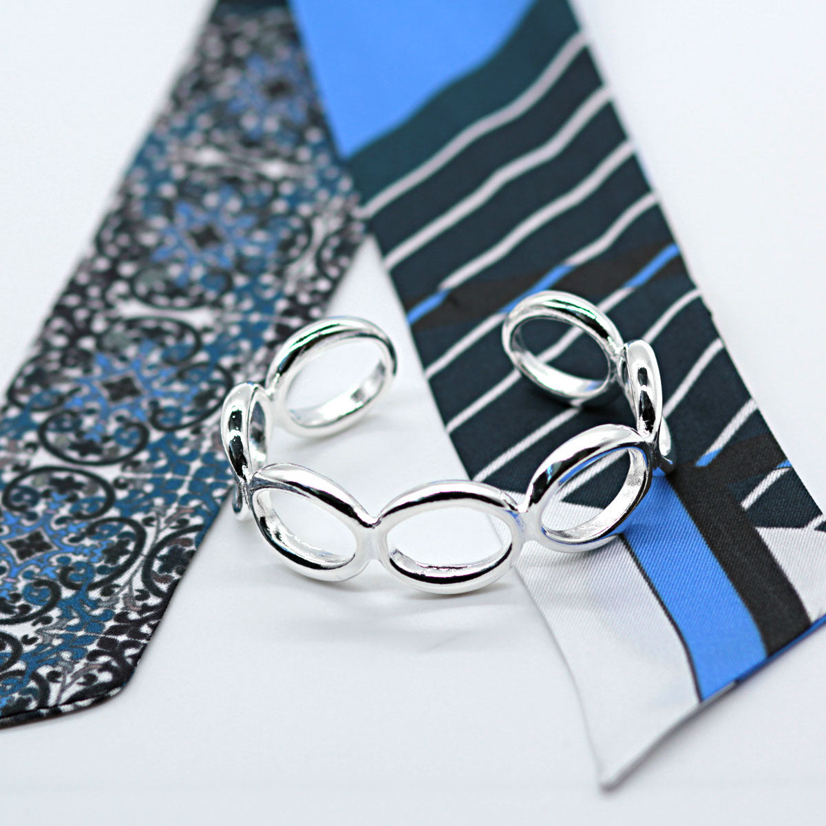 Notre bracelet emblématique marie la noblesse de l'argent à la délicatesse d’un mini twill de soie imprimée, interchangeable à l’infini.