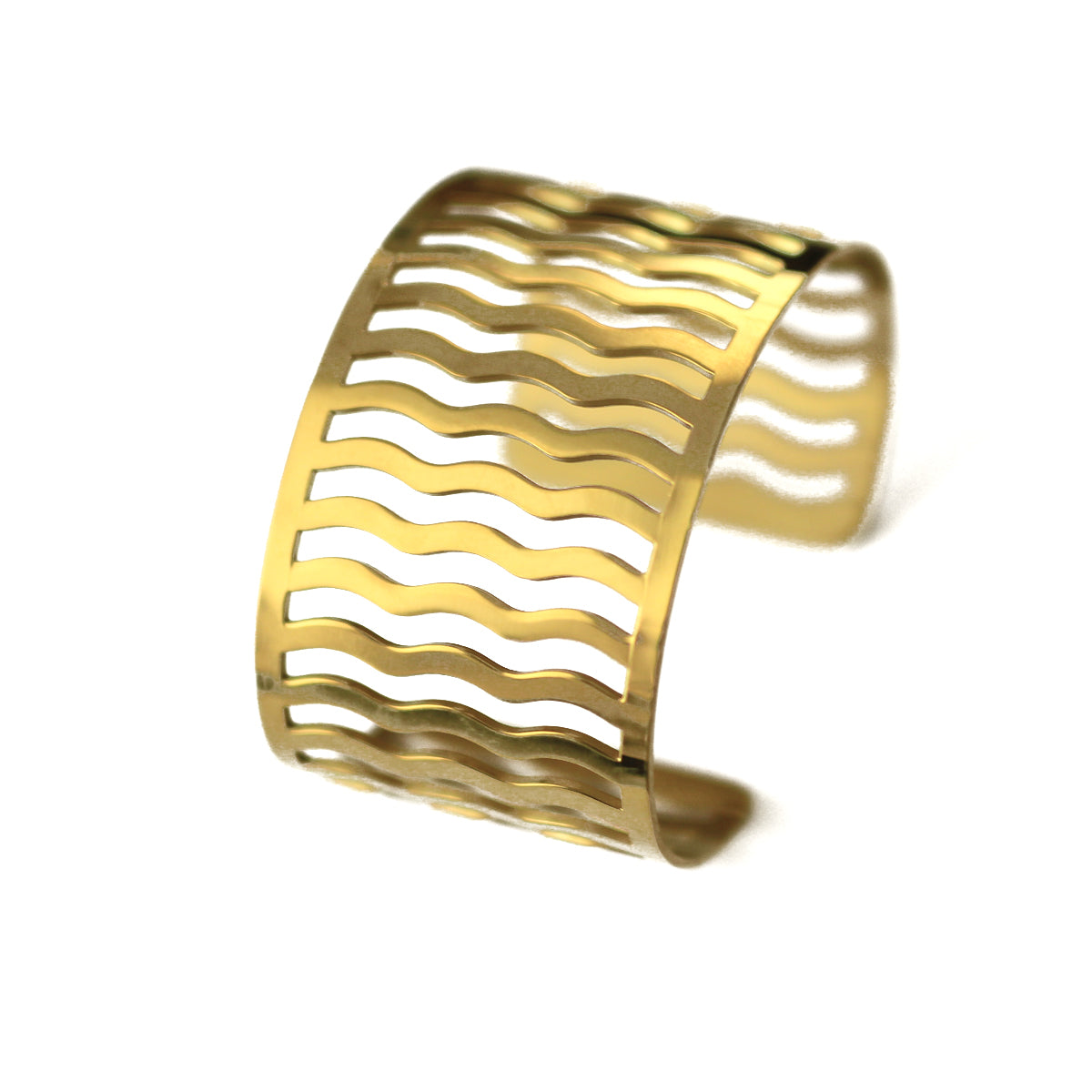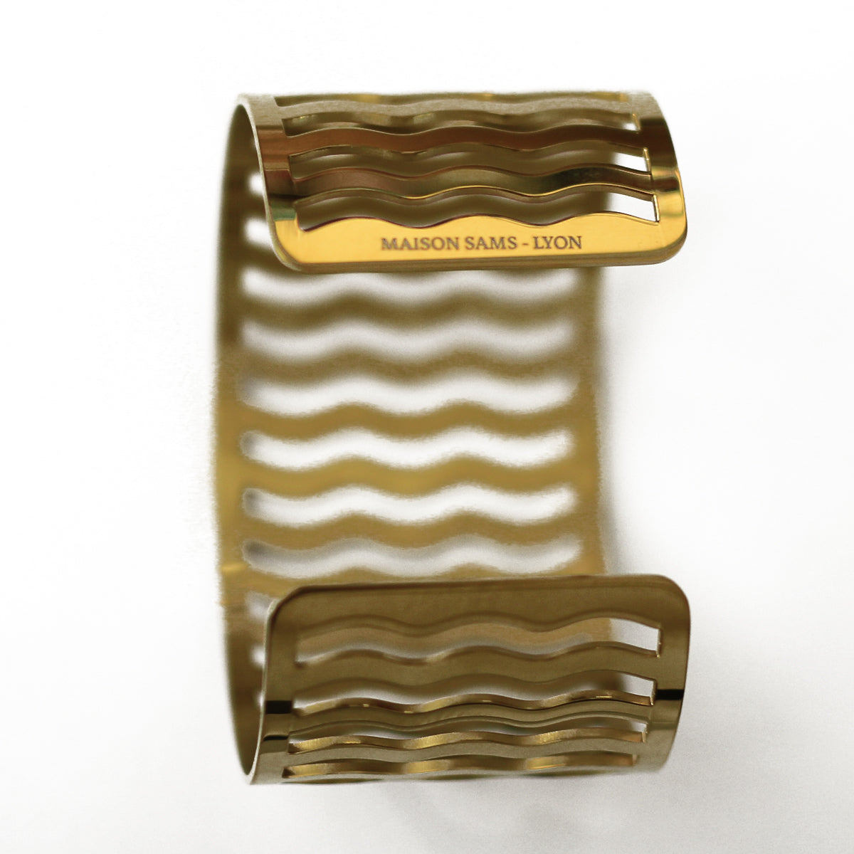 Sculpturale et lumineuse, cette manchette dorée à l’or fin 18 carats accueille nos mini twills de soie pour un jeu de contrastes entre métal et douceur.