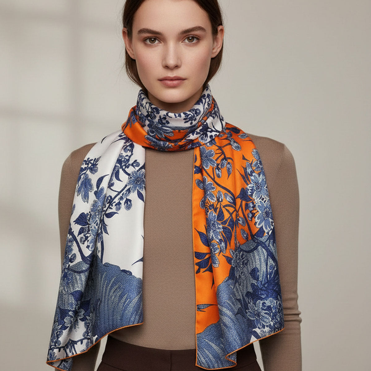 Cette étole est dessinée, imprimée et confectionnée à Lyon dans la pure tradition lyonnaise. Un format généreux pour une allure d'exception.