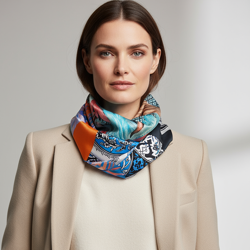 Le snood en soie Maison Sams, c’est le mariage parfait d’une très belle matière, le twill de soie, au drapé et lustré somptueux, et d’un format hyper-tendance, à la fois chic et pratique à porter.