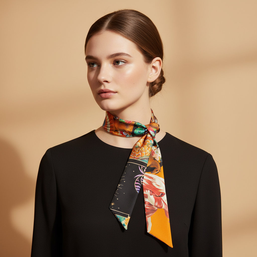 Le Twill à nouer Maison Sams est un petit foulard en soie tout en longueur qui se met soit au poignet, soit à la cheville ou bien encore dans les cheveux ou autour du cou