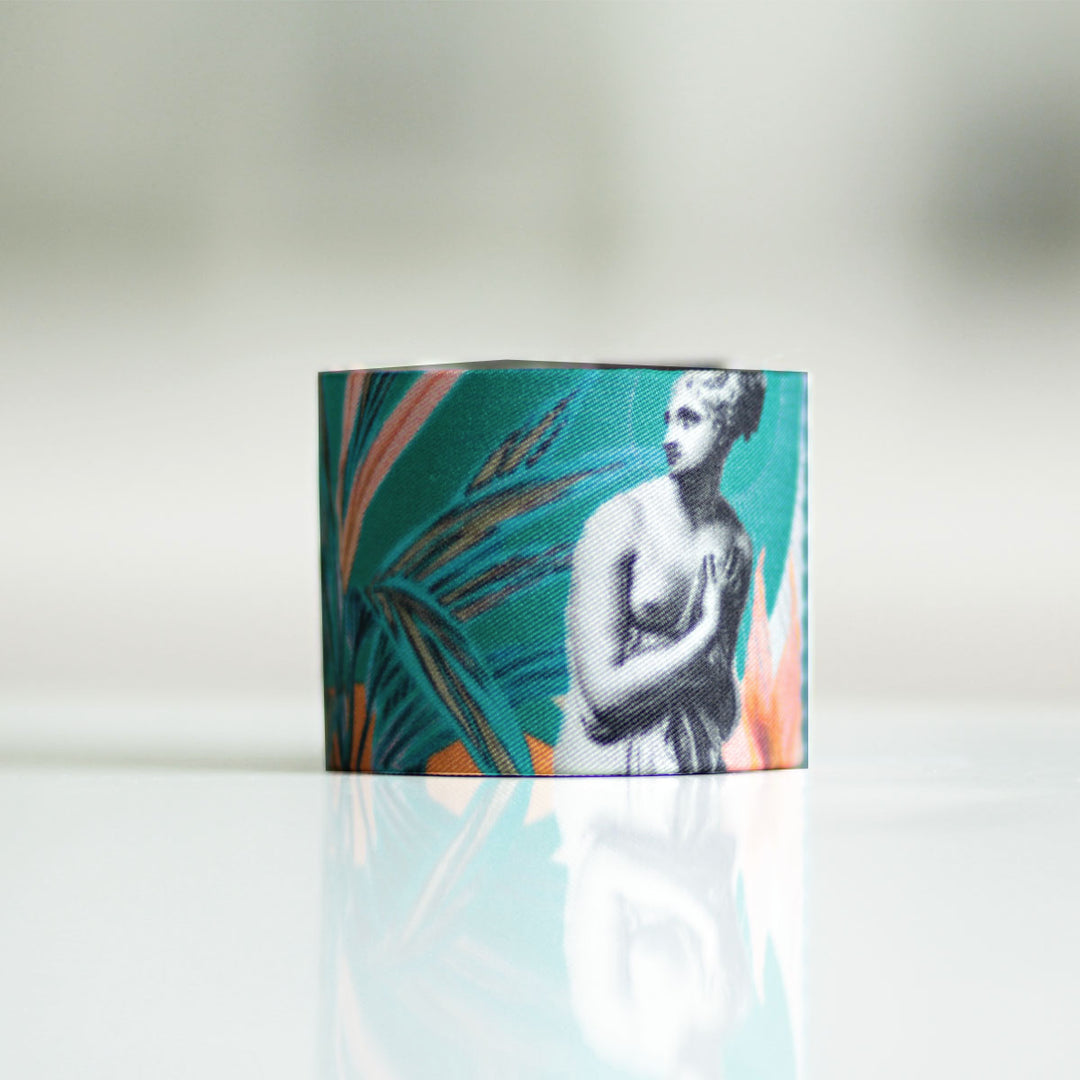 Bracelet manchette finement recouvert de soie et entièrement fait main à Lyon.